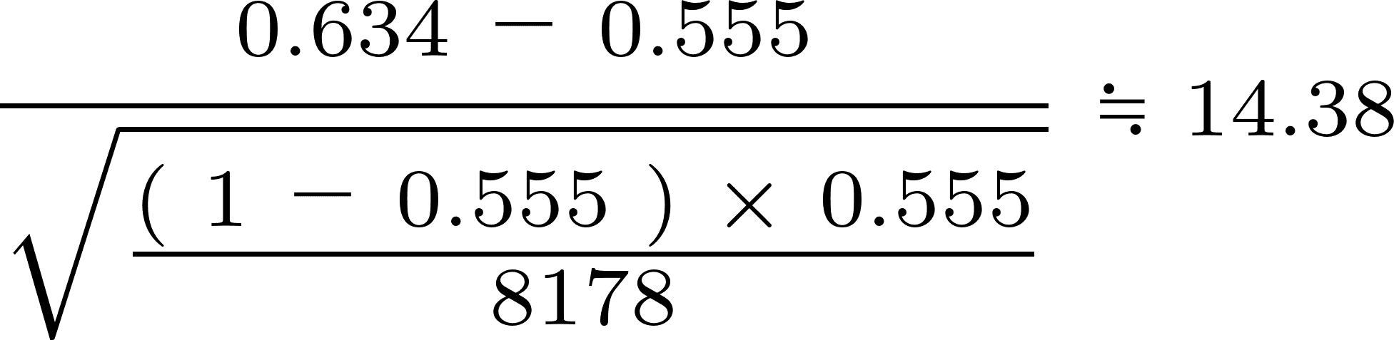 先に、検証することに対して調べた数(8178レース)と確率(64.3%)、そして基準となる確率(55.5%)を使って、「検証するための値」となる検定統計量を算出します。
