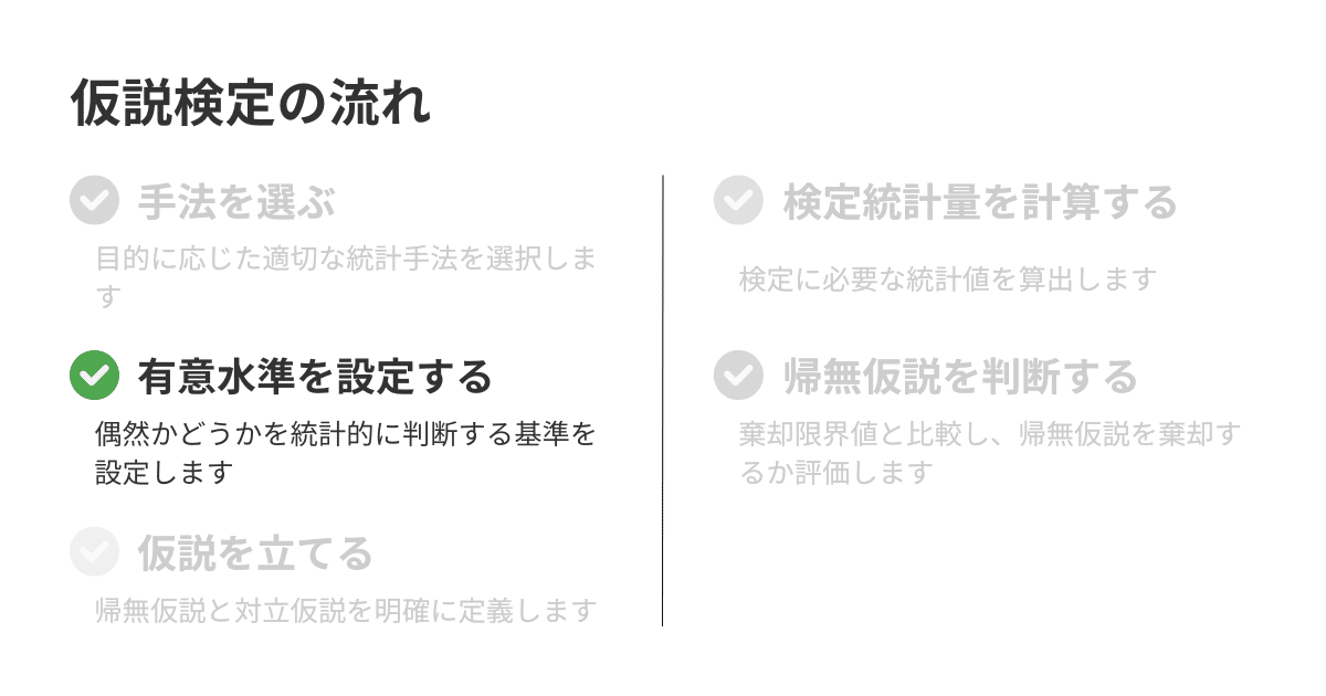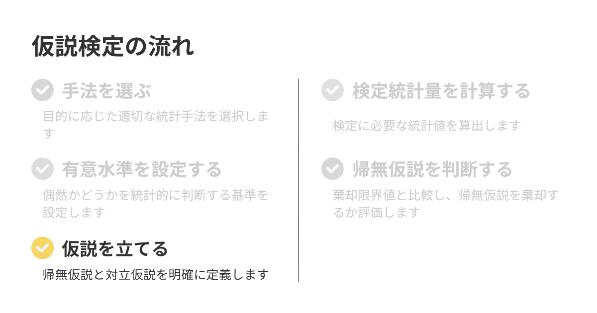 そのため、あらかじめ、これらの仮説を設定しておく必要があります。